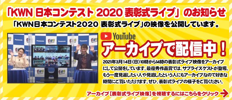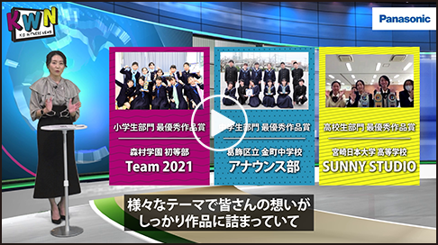 今年もコロナ禍の中、KWNが進行しました。作品作りにも、審査員の審査においても、通常とは異なる制限が付きまとい、コロナ前のように自由には動けない環境となりました。そのような中、参加していただいた各校の皆さんは知恵を絞り、より良いものを作り上げようと活動されたことは、作品から感じ取れます。どの作品もすんなり行くことはなく、参画したメンバーがそれぞれの役割の中でアイデアを出し合って、試行錯誤をしながら一つのものに仕上げられたと思います。そのプロセスが重要であり、出来上がった時には取り組む前とは全く違う達成感を味わうことができ、大きく成長されたと思います。今後も継続して映像制作に取り組んで頂ければと願います。また、映像制作機器を開発している立場として、カメラを通して皆さんの作品作りに貢献できたこと、とてもうれしく感じています。ありがとうございました。