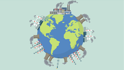 石油や石炭などの化石燃料を燃やすと、大気中の二酸化炭素が増え、気温の上昇につながります。気温が上がると、台風や洪水などの自然災害が増加。また、極地では氷が溶けはじめ、海面が上昇する結果、陸地面積が小さくなります。