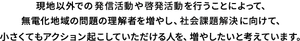 情報をシェアしていくことで、さまざまな人や社会と協力し合って、
