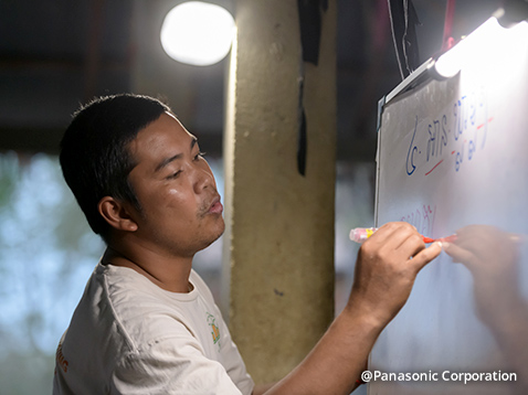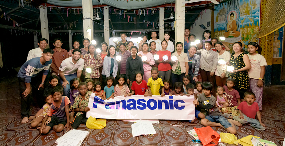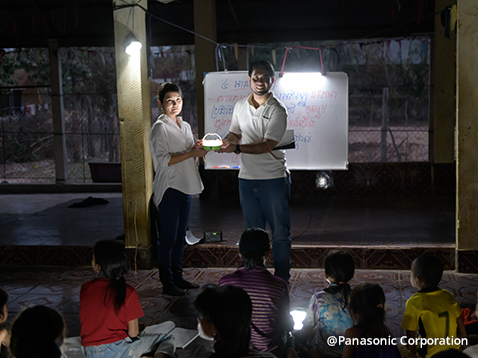 パナソニックは、2013年にスタートした「ソーラーランタン10万台プロジェクト」の取り組みを引き継ぎ、2018年からは「みんなで“AKARI”アクション」として、一般の方にも参加を呼びかけ、無電化地域にソーラーランタンを届ける活動を行っています。