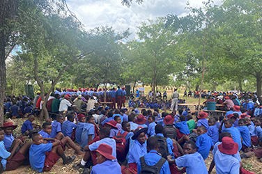 2月27日、寄贈先の1つであるチジャムグワム中学校にてソーラーランタンの寄贈式を行いました。寄贈式は、同地区教育行政の高官をお招きし、学校の先生、同中学校の生徒及びその保護者の方々が参加し、周りの小学校の子どもたちも見学に訪れるなど、数百名が参加した大規模なものとなりました。初めにADRA ZimbabweのJuliusプロジェクトコーディネーターから「すべての子どもたちは学校で学ぶ権利があり、誰一人取り残されてはならない。子どもたちが学ぶことができるように、日本からパナソニック製のソーラーランタンを持ってきました。」と挨拶を行い、続いてADRA Japanの上田プロジェクトマネージャーから「すべての両親は子どもたちの明るい未来を望んでいる。そこで、パナソニックは若い子どもたちの未来を照らす必要があると考えました。子どもたちの未来と同じようにランタンを大切にしてください」と述べました。