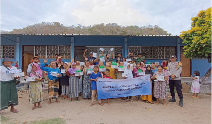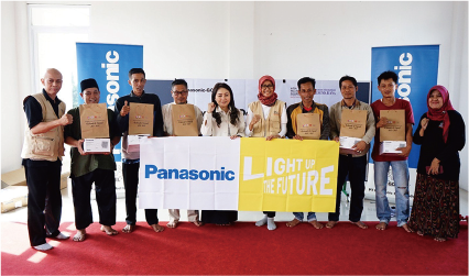 インドネシアの PTパナソニック・ゴーベル・インドネシア(PGI)を通して、2つの村(バンカ・ブリト ゥン州シジュク地区テロン村、ケチ州ギリ・アサハン島村)にソーラーランタンを寄贈しました。インドネシアでは電力供給不足が社会問題として認知されていますが、ランタンで子どもたちの学習や家事などを可能にすることが期待されています。動画はこちら(URL)