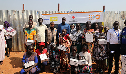 パナソニックは国連人口基金(UNFPA)南スーダンと協働し、紛争や気候変動による人道危機が続くマラカル、レンク、ピボル、ルブコナの4地域に、ソーラーランタンを寄贈しました。これらの地域では、女性や女児がジェンダーに基づく暴力(GBV)の危険にさらされており、夜間の移動や学習の機会が制限されています。