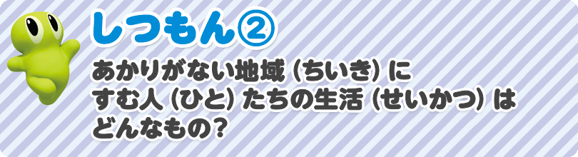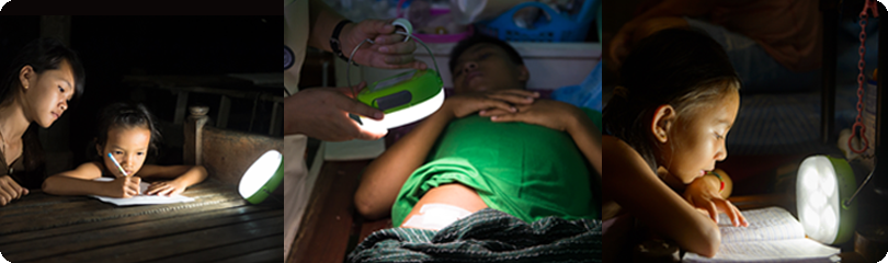 パナソニックでは、こうした地域(ちいき)の人(ひと)たちに、「ソーラーランタン」というあかりをとどけているよ。どうしてあかりが大切(たいせつ)なのか、かんがえてみよう!