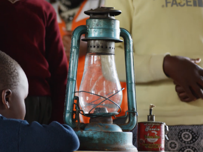 電気(でんき)のない生活(せいかつ)をしている人(ひと)の数(かず)は、おおよそ7.6億(おく)人(にん)いて、そのうち、おおよそ80%(ぱーせんと)がアフリカ、おおよそ15%(ぱーせんと)がアジアに住(す)む人(ひと)たちです。電気(でんき)のない場所(ばしょ)のことを「無電化(むでんか)地域(ちいき)」といいます。そこにすんでいる人(ひと)たちは、電気(でんき)がないので、夜(よる)は、「灯油(とうゆ)ランプ」という油(あぶら)を燃料(ねんりょう)にした暗(くら)いあかりや、ろうそくの光(ひかり)などで生活(せいかつ)しています。