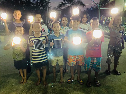 「みんなで”AKARI”アクション」の古本・ディスク募金で、ミャンマーの首都ヤンゴン市内の児童養護施設にソーラーランタンを寄贈しました。学習環境の改善に役立っています。