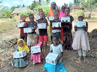 ランタンを受け取ったムキンガ地域の子どもたち ©World Vision