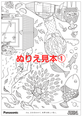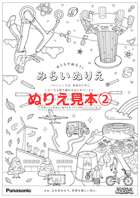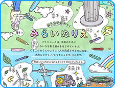 ダウンロードして、プリントして、自由に楽しくぬりえをすれば、君だけの「みらい」が完成!