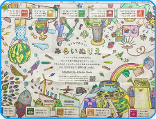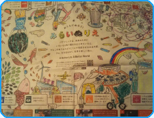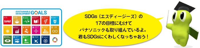 パナソニックの未来にむけた取り組みを楽しい絵で表現(ひょうげん)しているよ。