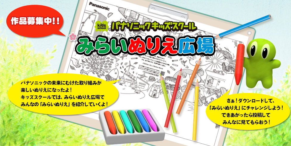 みんなが投稿してくれた作品を紹介(しょうかい)する、みらいぬりえ広場だよ!