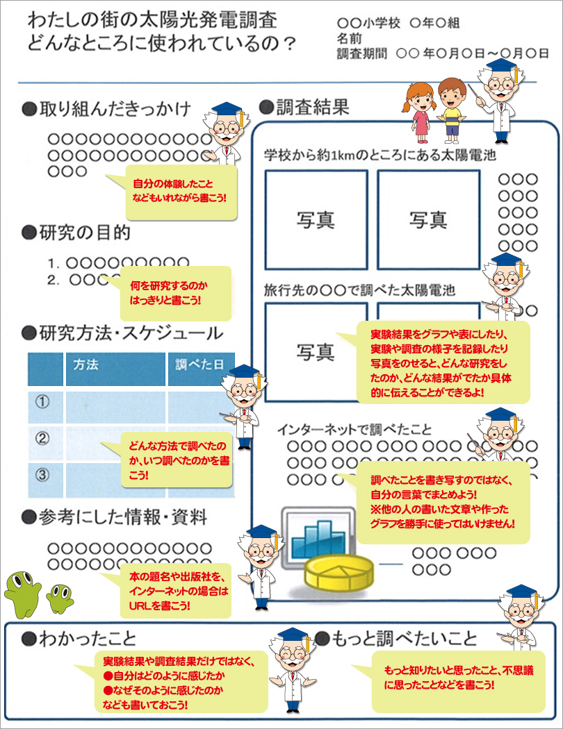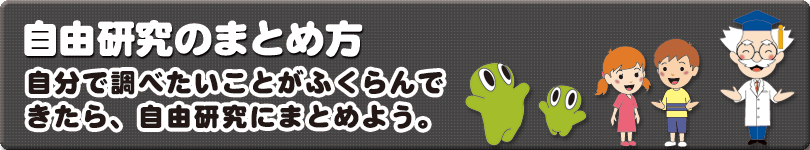 興味(きょうみ)をもったこと、自分で調べたいことがふくらんできたら、 自由研究にまとめよう。