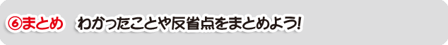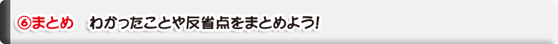 わかったことや自分の考え、こうすれば良かったと思う点、次はこうしてみたい点などをまとめてみよう。自分の言葉で書くのがポイントだよ。