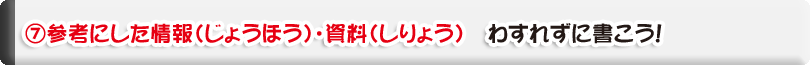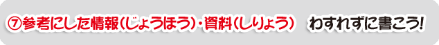 調べる時に使った本の題名と著者(ちょしゃ)・出版(しゅっぱん)社、インターネットのURL、見学した施設の名前などを書こう。