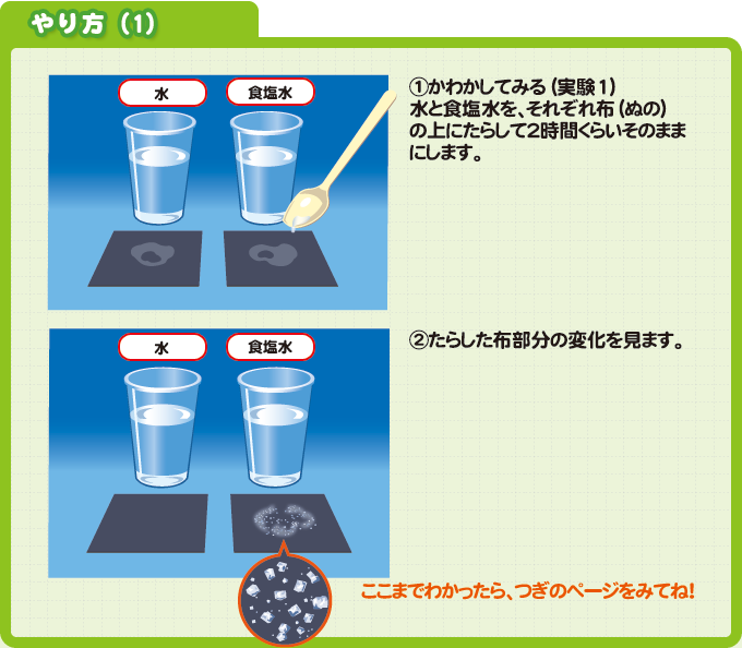 一見、見た目は同じ、水と食塩水。その性質(せいしつ)のちがいをくらべてみよう!
