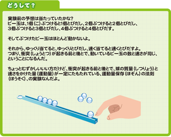 どうしてビー玉は1個(こ)ぶつけると1個とびだし、2個ぶつけると2個とびだすんだろう?