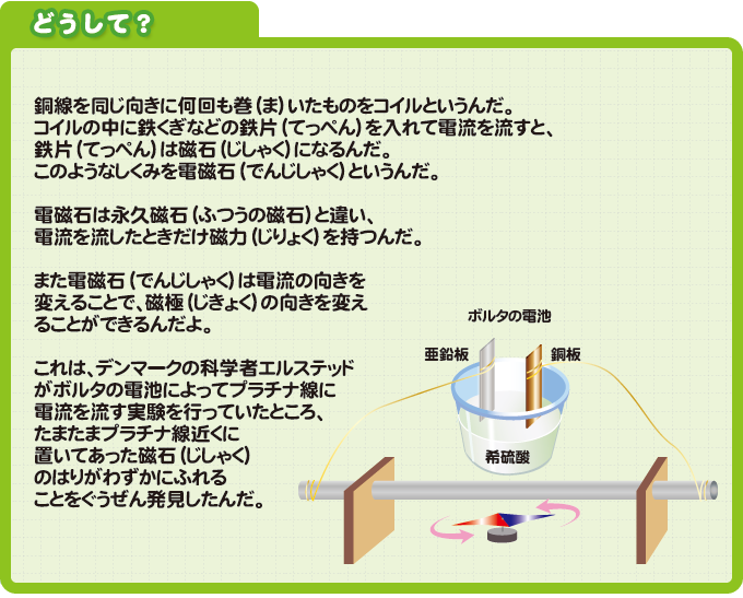 どうして電気を使うと鉄などの金属が磁石(じしゃく)になるんだろう!