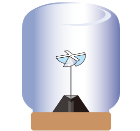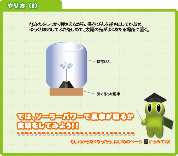 太陽の光を当てると、びんの中の風車が回りだすんだ!