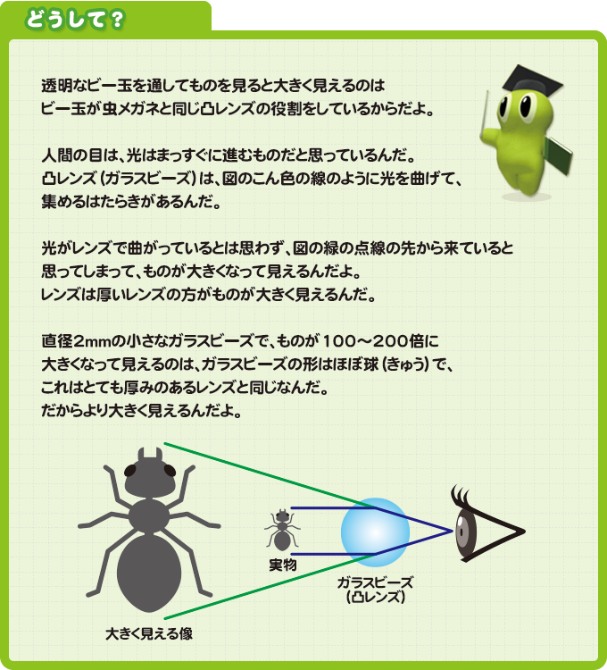 どうして小さいガラスビーズで100~200倍に大きく見えるんだろう!