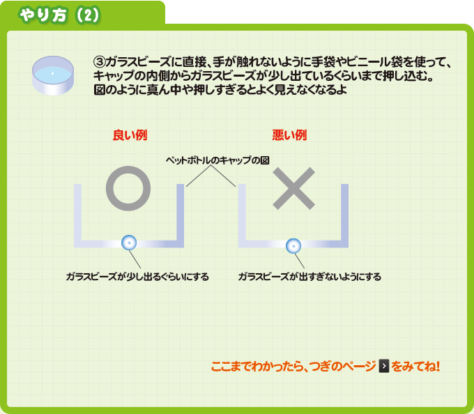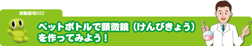透明(とうめい)なビー玉を新聞紙に近づけて見ると文字が大きく見えるんだ!ビー玉よりもっと小さいガラスビーズとペットボトルを使って、100~200倍に大きく見える顕微鏡(けんびきょう)を作ってみよう!