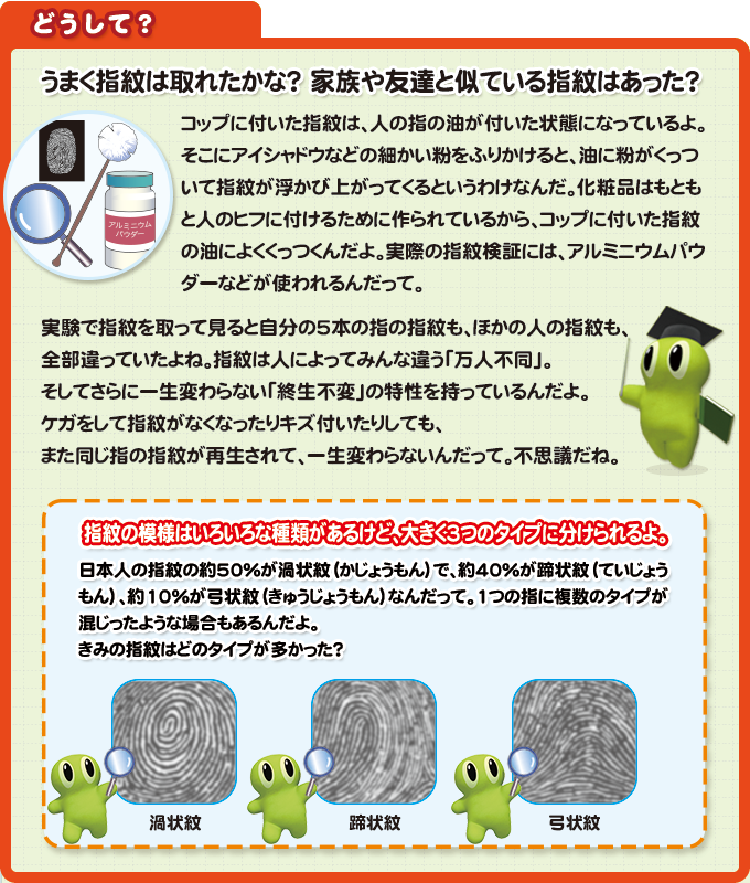 さあ、探偵(たんてい)気分で指紋検出!「同じ指紋は2つとない」が本当なのか、確(たし)かめてみよう!