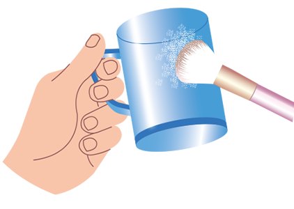 この時指紋が付いているところに粉(こな)をふりかけ、刷毛のようなものではらう動作を見たことあるかな?専門的(せんもんてきな)な粉って印象(いんしょう)だけど、粉は100円ショップなどで売っているアイシャドウでも代用できるんだよ。