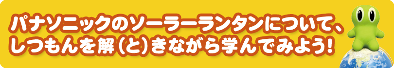 それでは、しつもんに挑戦(ちょうせん)してみよう!わからなかったら、こたえをよくよんで、パナソニックのソーラーランタンについて学んじゃおう!
