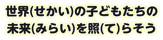 わたしたちが毎日(まいにち)つかっている電気(でんき)。でも、世界(せかい)には、電気(でんき)がとおっていないところでくらしている人(ひと)たちもたくさんいるんだ。