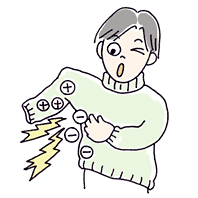 セーターを着て体を動かしていると、セーターとその内側の服が擦(こす)れ合うよね。すると片方(かたほう)がプラスの電気を持ち、もう片方がマイナスの電気を持つようになるんだ。そうなってからセーターを脱ぐと、マイナスの電気はプラスの方に引き寄(よ)せられ、電気が流れている状態(じょうたい)になってしまう。パチパチというのは電気が流れる音、チクチクするのは電気に触(ふ)れたからなんだ。こういう電気のことを静電気と呼(よ)んでいるよ。