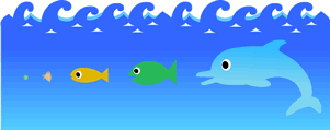 海の生命を支(ささ)えているものは、とっても小さなプランクトンだ。プランクトンには、植物プランクトンと動物プランクトンとがある。植物プランクトンは葉緑素(ようりょくそ)を持ち、光をエネルギーにしているよ。動物プランクトンは植物プランクトンを食べて増(ふ)え、動物プランクトンは小魚などに食べられる。そして小魚は、より大きな魚などの動物に食べられ、今度はイルカなどが大きな魚をエサにしているんだ。このように、生き物たちは食べたり食べられたりして、つながっているんだね。これを食物連鎖(しょくもつれんさ)とよんでいるよ。