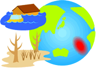 南太平洋にあるツバルという島は、地球温暖化のために世界で最初に海にしずむ島といわれている。海抜(かいばつ)が低いツバルでは、近年、海岸がどんどん海に浸食(しんしょく)されている。高潮(たかしお)の被害(ひがい)を受けたり、畑に海の水がしみこんで作物が育たなくなったり、困(こま)ったことが起きているんだ。日本だって海に囲まれている島国だから、決して人ごととはいえないよね。