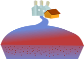 地球の気温が上昇すると、海はどうなってしまうだろう。海水は温まると、ふくらんで大きくなる。氷でおおわれている南極(なんきょく)や北極では、氷が溶(と)ける。すると海の水位が上がって、陸地をのみこんでしまう。このまま地球温暖化(おんだんか)が進んだら、もしかすると何十年後かには、いくつもの海岸や都市が海の下に沈(しず)んでしまうかもしれない。何とかしないと、たいへんだよね。