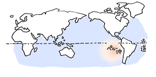 エルニーニョ現象(げんしょう)って、聞いたことあるかな?エルニーニョとは、太平洋の中部から南米ペルー沖(おき)にかけて、海面の水温が通常よりも大きく上がる現象のことだよ。この現象は44~5 年おきに発生し、半年から1 年ほど続くんだ。でも、発生する原因(げんいん)はまだ完全にはわかっていないんだ。