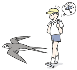 空気中の水分が多くなると、蚊(か)などの羽が水分をおびて、下の方を飛ぶようになる。すると、蚊をえさにするツバメも低く飛ぶようになる。空気中の水分が多いということは、雨になりやすいということだ。
