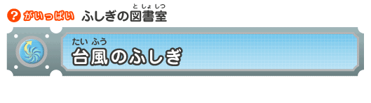台風に目があるって、聞いたことはあるかな?台風のうずまきの中心には、目のように穴(あな)のあいた部分があるんだよ。台風の目はふしぎなところだ。中心のそばでは強い風が吹(ふ)き、強い雨が降(ふ)っているのに、台風の目の中では、雨や風がほとんどない。青空が見えることもあるんだ。