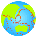 地球上で今までに起きた大きな地震を、点であらわしてみると、地震がよく起きるところと、まったく起きないところがある。そして地震がよく起きるところは、線のようにつながっていることがわかるよ。この線の形は、実はプレートの形とぴったりあてはまる。つまり、プレートとプレートの境目のところで、地震が起きているっていうことだね。