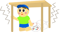 地震は突然(とつぜん)やってくる。もしも大きな揺(ゆ)れが起きたら、とっさにどうしたらいいんだろう。まずは、自分の身を守ることだ。たおれやすい家具や窓(まど)ガラスから離(はな)れて、机(つくえ)の下などに身をかくそう。ざぶとんがあったら、ざぶとんで頭を守るといい。外にいたら、かばんなどの持ち物で頭を守ろう。ブロック塀(べい)のそばやせまい路地では、物が落ちてきたりたおれてきたりするかもしれない。倒れている電柱(でんちゅう)や電線など、危険(きけん)なところから離れよう。
