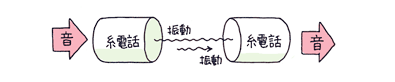 音は空気を伝わって耳に届くけど、実は空気以外にもいろんな物が伝えてくれるんだ。糸電話の場合、音を伝えているのは糸。しかも、糸は固体で、気体の空気よりも音をしっかり伝えてくれる。空中を伝わる音はだんだん弱くなっちゃうけど、固体の物は音を弱めることなく伝えられるんだよ。ここでポイントは、糸をピンピンにしておくこと。すると、強く音を伝えてくれる。でも糸を途中(とちゅう)でつまむと、音は伝わらないぞ。