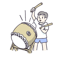 音の鳴っている太鼓(たいこ)の前に立つと、ビリビリしたり、風が吹(ふ)いているように感じることがあるでしょう。これは、音を伝えるための空気の震(ふる)え。目には見えないけど、触ったり感じたりすることはできるんだね。たくさん音を感じたいなら、大きな太鼓を強くたたけばいい。たたく面が大きいほど揺(ゆ)らせる空気の量が増(ふ)えるし、強くたたくほど勢(いきお)いよく揺れるからだ。