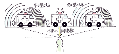 ピーポーパーポーって救急車がやってくる。目の前を通り過ぎた途端(とたん)、サイレンの音が変わったってことない? 気のせいなんかじゃなくて、これにはちゃんとした理由があるんだ。
