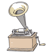 今はCD(シーディー)やテープに音を記録しておけるね。でも、大昔はそんなことはできなかった。世界で初めて音のデータを保存(ほぞん)して、もう一度同じ音を出せるようにしたのは、あの発明王エジソン。その録音装置(ろくおんそうち)は蓄音機(ちくおんき)だ。