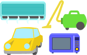 未来のことを考えて、エネルギーを上手に使える工夫をしたいよね。家庭でエネルギーを使うことが年々増(ふ)えているから、省エネタイプの製品(せいひん)を使うのもひとつの手だね。エアコンや冷蔵庫(れいぞうこ)などの家電製品は、新しい製品が開発されるたびに省エネルギーの工夫がされている。少ないエネルギーで動くから、電気代も少なくてすむんだ。