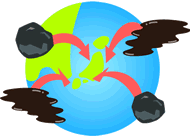 近年、心配されているのが、二酸化炭素(にさんかたんそ)による地球温暖化だ。石油や石炭などの化石燃料を燃やすと、二酸化炭素がたくさん排出(はいしゅつ)される。二酸化炭素は地球の熱をにがさないように、温室のようなはたらきをするんだ。地球の気温が高くなると、北極や南極の氷がとけて海面が上昇(じょうしょう)し、低い土地はのみこまれてしまう心配がある。