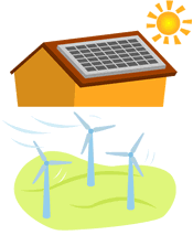 化石燃料(ねんりょう)は便利だけれど、資源(しげん)には限(かぎ)りがあるし、地球温暖化(おんだんか)の原因(げんいん)になるなどの問題がある。そこで自然の力を利用したエネルギーが、注目されているよ。これらは二酸化炭素(にさんかたんそ)や環境(かんきょう)をよごす物質(ぶっしつ)などを出さないから、地球にやさしいんだ。
