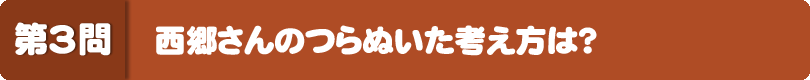 ……私利私欲(しりしよく)をひじょうにきらった西郷さん。そんな西郷さんは当時の若い士族たちをひきつけ、また今でも多くの人たちにしたわれつづけています。西郷さんがモットーとした言葉は、さてどれでしょう。
