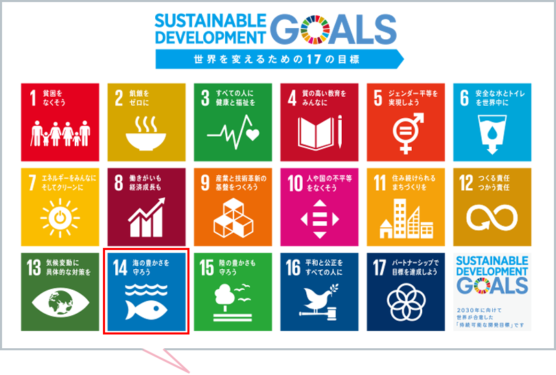 その中の14番目の目標が「海の豊かさを守ろう」なんだ。