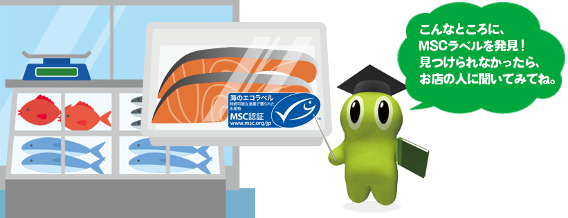 サステナブル・シーフードとみとめ、MSC「海のエコラベル」がつけられるんだよ。