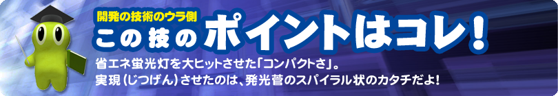 長い年月、紆余曲折(うよきょくせつ)の末に考えられたのが発光菅(かん)をスパイラル状(じょう)に巻(ま)くことなんだ。