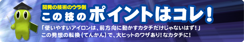 でも、もっと使いやすい、新しいアイロンをつくりたいという思いを実現(じつげん)するために、上下がとがった形のアイロンが生まれたんだ。