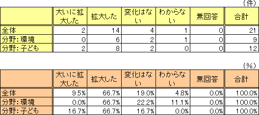 またボランティア数においても、助成実施前と現在とを比べると、2倍以上に増加している。活動の担い手であるボランティア人材の育成・強化が図られたといえる。
