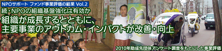 結論からいうと、Panasonic NPOサポート ファンドの助成により2010年にキャパシティビルディング事業を行った団体では、前回調査対象団体と同様、組織が成長するとともに、主要事業のアウトカム・インパクトが改善・向上していた。同ファンドの組織基盤強化に対する有効性をあらためて確認した次第である。